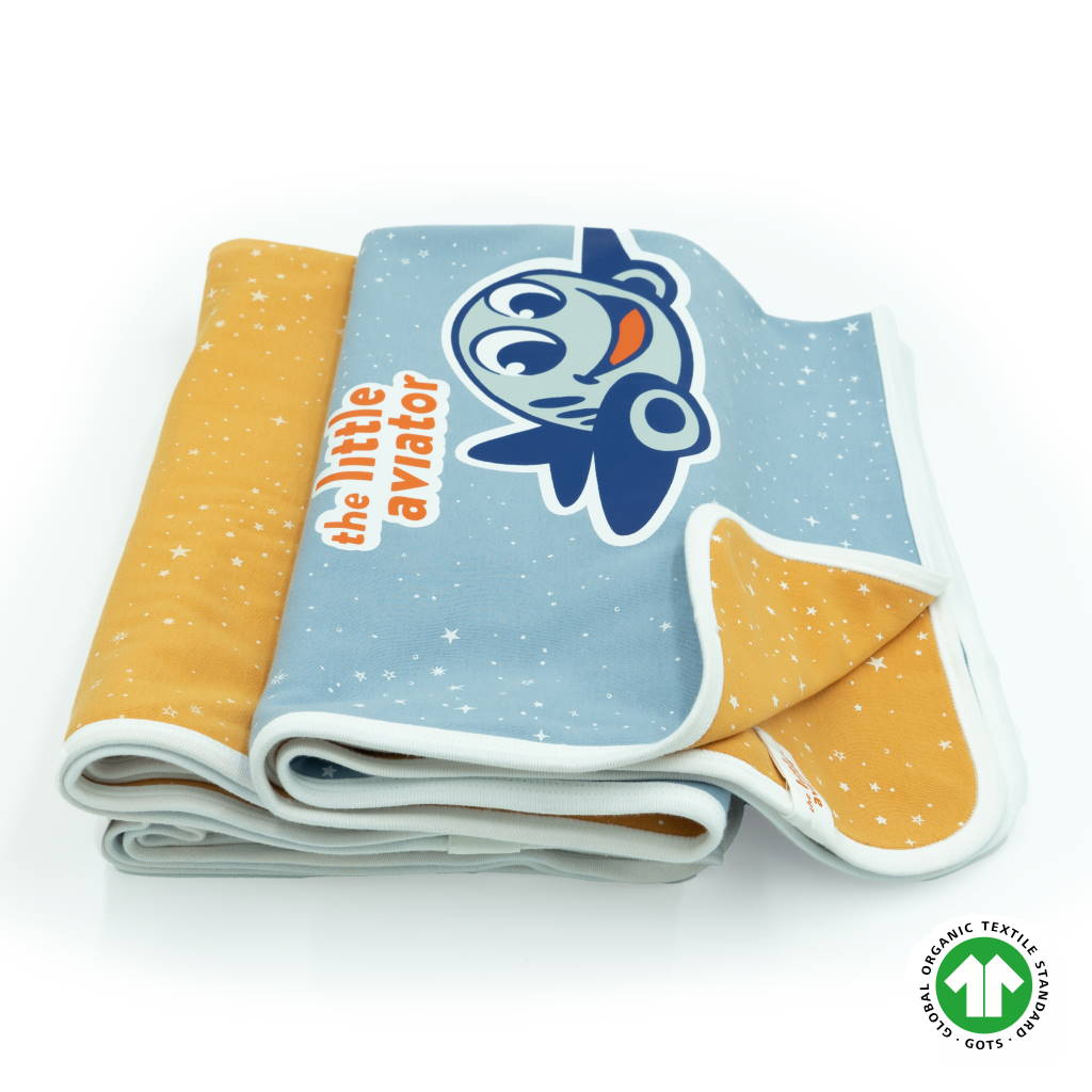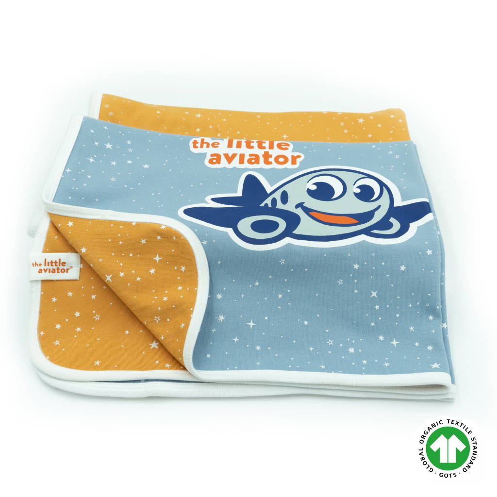 Owning a Global Organic Textile Stands-certified cotton baby blanket is beneficial. This Little Aviator organic baby blanket is soft and makes the perfect sleeping partner for your baby. The double layers also create a soft surface for your baby to play on after nap time is over.